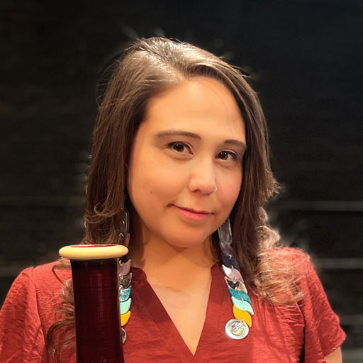 As an avid supporter of new music, Dr. Wilson (Yakama) frequently collaborates with composers on the creation of new works to expand the repertoire of the bassoon. She is especially passionate about embracing diversity in her performances by elevating music featuring underrepresented perspectives and lived experiences, with a special focus on collaborating with Indigenous composers. In this capacity, she has premiered, commissioned, and recorded works by composers Juantio Becenti, Connor Chee, Louis W. Ballard, and Raven Chacon, among others. These efforts can be heard on her debut album, Works for the Bassoon by Native American Composers (WSU Recordings). Expansion of this work was supported by a WSU New Faculty Seed Grant in the form of an international Indigenous artistic collaboration with Māori composers Takerei Komene, Te Ahukaramū Charles Royal, and Phil Brownlee, the results of which can be heard on her sophomore album, Works for the Bassoon by Māori Composers (WSU Recordings). In 2022, she received an Artist Trust Fellowship to fund the commissioning of Connor Chee’s Concerto for Bassoon and Strings which she premiered in June 2024 with the Ravenna String Orchestra (Seattle). She also actively composes new pieces and creates resources that facilitate the performance of works from the 20th century and beyond. Wilson’s composition Dance Suite for Solo Bassoon was awarded the 2022 PatsyLu Prize for outstanding work by a BIPOC composer in the 41st Search for New Music Competition by the International Alliance for Women in Music.