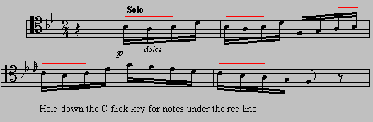 Beethoven, Ludwig. Fourth Symphony, fourth movement. Ewell, Terry B. (Norman Herzberg, 20 August 1994). For clean articulation of the rapidly tongued A3, Bb3, and C4 sixteenths hold down the L. H. C flick key. For example, in the solo on Bb3-A3-Bb3 do not flick each note but keep the C flick key down for the duration of the three notes (lift on the following D4).