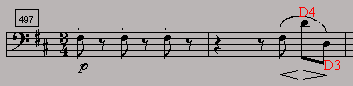 Brahms, Johannes. Second Symphony, first movement, m. 498. Birnstingl, Roger. In Apfelstadt, Marc and Klimko, Ronald. Bassoon Performance Practice, Teaching Materials, Techniques and Methods. Idaho: University of Idaho, 1993, p. 66. For slur from D4 to D3 use this fingering on D3: