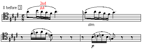Eight measures before rehearsal number 3 use Cooper p. 278 on the second A4 (the sixteenth-note), and Cooper p. 274 on the other A4s.