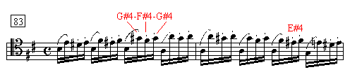 Stravinsky, Igor. Pulcinella, Gavotta--sixth movement. Ewell, Terry B. (20 August 1994). Three after rehearsal number 76 for slur to D5 use Cooper p. 339. In variation 2a, at rehearsal number 83 for B3-G#4-F#4-G#4 use Cooper p. 263 for G#4 and Cooper p. 233 for F#4. In the next measure also use the same fingerings for G#4 and F#4, for E#4 use Cooper p. 216.